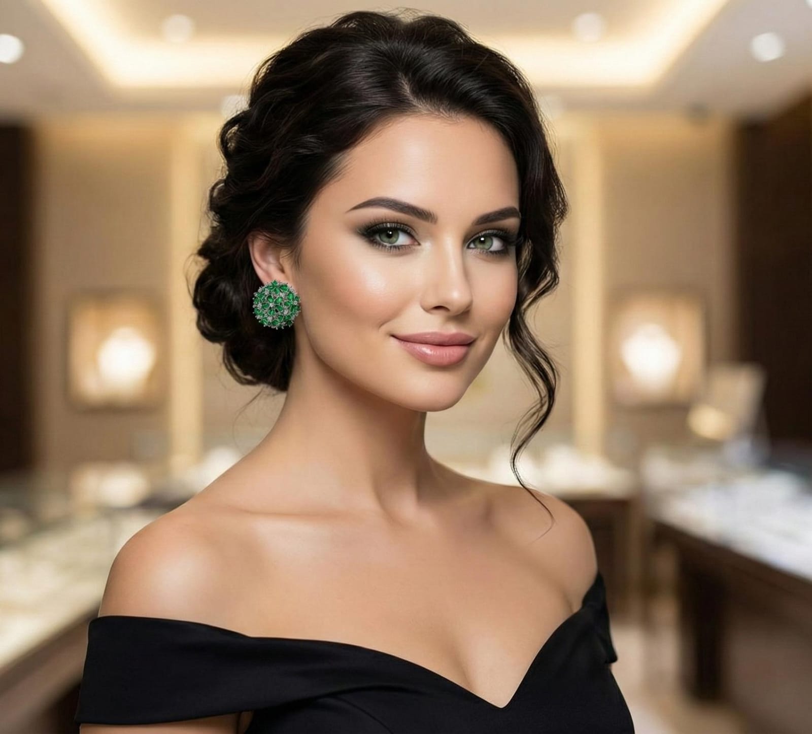 Delicate yet striking, the Elara Studs are an ode to timeless femininity and floral grace. At the heart of each stud lies a brilliant round centre, encircled by emerald-hued marquise stones arranged in a soft, sculpted flower silhouette. The marquise cut brings an elongated elegance, giving the studs a refined sparkle from every angle. Designed to blend sophistication with subtle colour, these earrings are perfect for both everyday elegance and celebratory occasions. Lightweight, radiant, and unforgettable—the Elara Studs are a floral-inspired statement that never fades.
